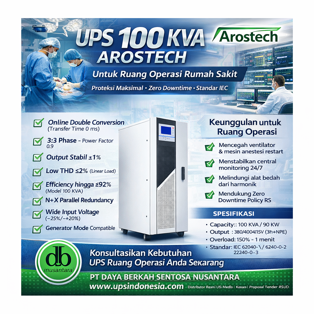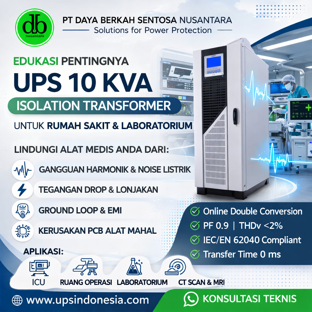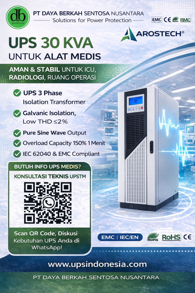 UPS 300 KVA untuk Data Center dan CT MRI Wajib Digunakan di Fasilitas Kritis? UPS 300 KVA untuk Data Center dan CT MRI bukan lagi sekadar perangkat cadangan listrik, tetapi menjadi tulang punggung sistem kelistrikan di fasilitas kritis seperti radiologi dan data center rumah sakit. Saat MRI melakukan scanning, CT Scan memproses citra resolusi tinggi, …