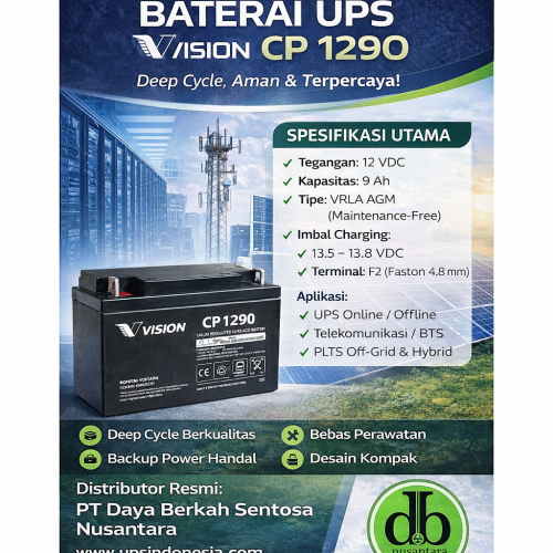 Baterai UPS Vision CP 1290 12V 9Ah untuk Sistem Backup Stabil
