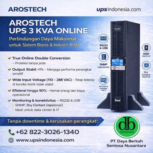 UPS Online 3 KVA Merk Arostech – Solusi Daya Profesional untuk Server, Industri, dan Sistem Kritis Modern