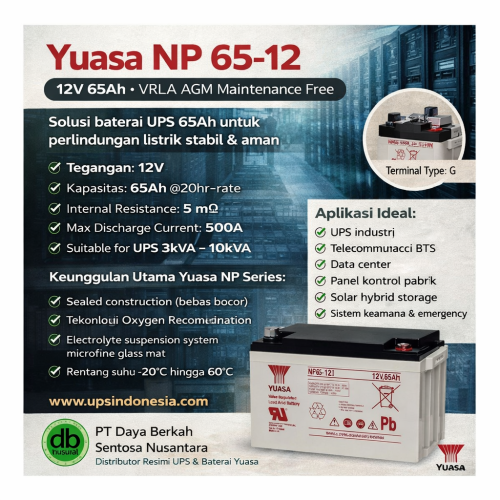 Yuasa NP 65-12 12V 65Ah VRLA AGM: Spesifikasi Lengkap, Performa & Aplikasi Standby Power