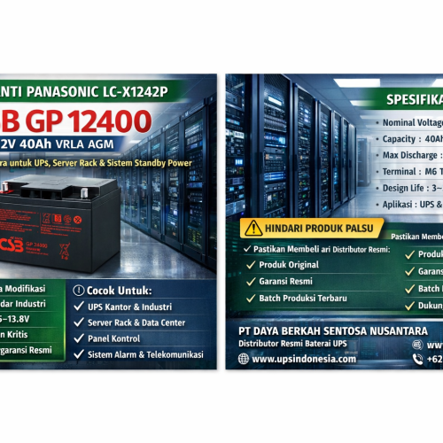 Rekomendasi terbaik untuk ketiga tipe RBC tersebut adalah CSB UPS 12460 atau Safe Energy SE 9-12, masing-masing digunakan 4 unit. Dengan memilih baterai yang kompatibel dan berkualitas industri, UPS akan kembali memberikan performa optimal, menjaga perangkat kritis dari risiko kerusakan listrik, dan menghindari downtime yang merugikan.